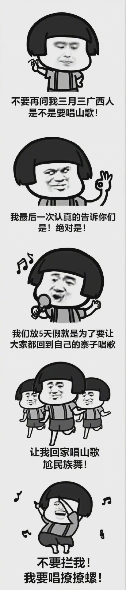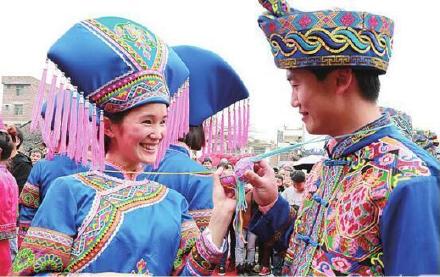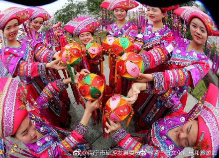 广西三月三 【农历三月三,亦称“上巳节”,是中华民族的传统节日】在广西,农历三月三,不仅是壮族传统踏青歌节,也是壮族祭祖的重要日子,当然最让人羡慕嫉妒的是广西今年壮族三月三连休4天。世界辣么大,只有广西在放假。2014年“壮族三月三”申遗成功,广西将壮族文化三月三推上了国际舞台。“三月三”节庆时,家家户户都会将糯米用不同颜色的植物汁液浸泡,做五色糯米饭,不少地方还会举行大型的公祭始祖。壮族山歌的发展尤为突出,歌会十分盛行,刘三姐是壮族民间传说的人物,聪慧机敏,歌如泉涌,后世的人更是在每年的三月三唱山歌来纪念她,因此“三月三”也是壮族地区的“歌圩节”,歌圩是男女青年找对象的好时机