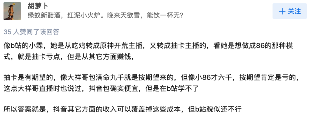 其背后的原因是,抖音的商业化更好,除了代抽卡之外,