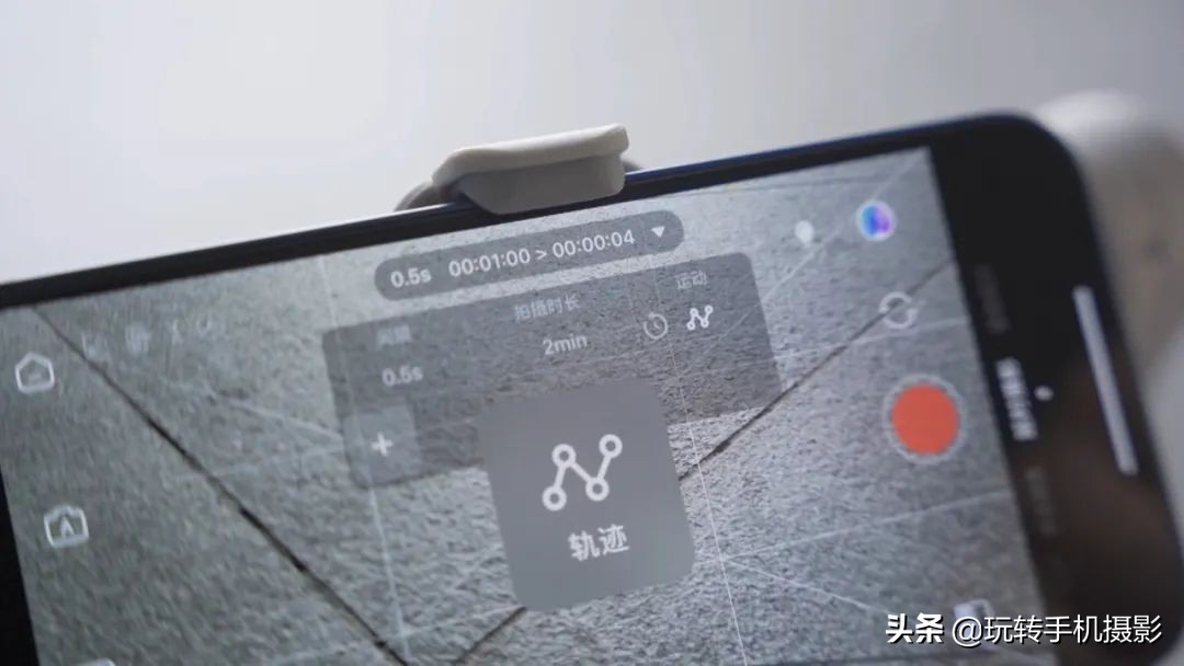 除了大范围移动延时,像我手上这台智云稳定器,它的App里自带轨迹延时,操作也很简单,在App里找到移动延时选择「轨迹功能」。