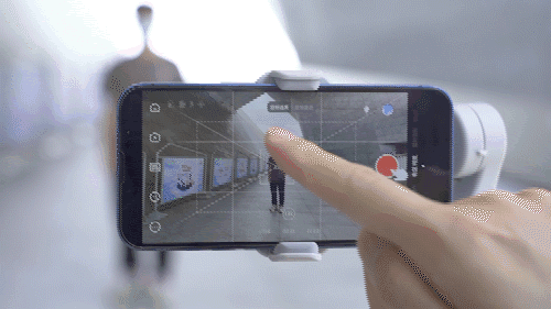 连接了zy cami app之后,Q4手机还可以智能跟踪被摄物,我们可以手动在屏幕里框选需要跟踪的物体,或者按一下稳定器的扳机键,手机相机就会智能识别并跟踪被框选的物体。
