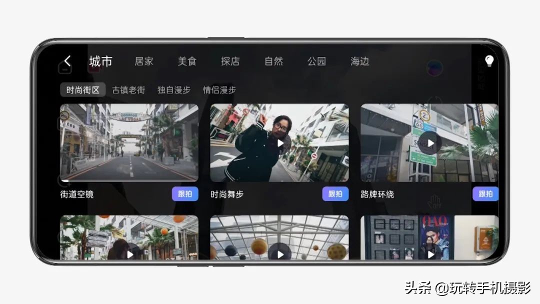 或者使用smart智能模板拍摄,选择模板之后,我们只需要选择合适的场景,按下快门然后根据模板的指引进行拍摄,这个功能就模板能帮助我们以最简单的方式出片。