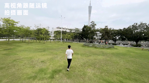 使用稳定器之后我们就可以以一个正常的跑步动作跟随,相机的方向垂直于运动的方向来跟随,跟随起来会舒适很多。