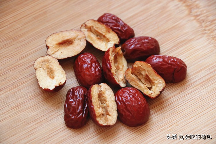 红枣洗好以后,把它从间剪开,把枣核挖掉。冬天用红枣煮汤水时要把枣核去掉,可以去除其燥热之气,这样就不会上火了。