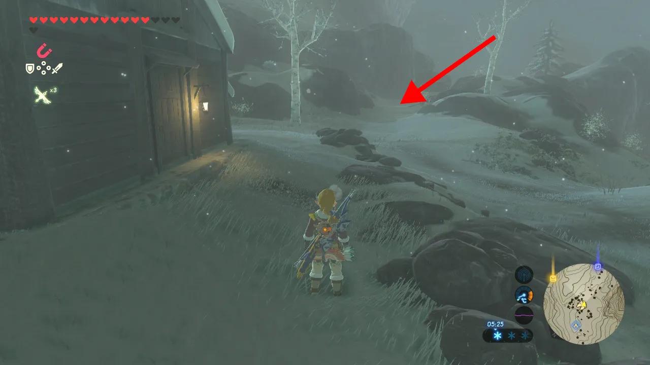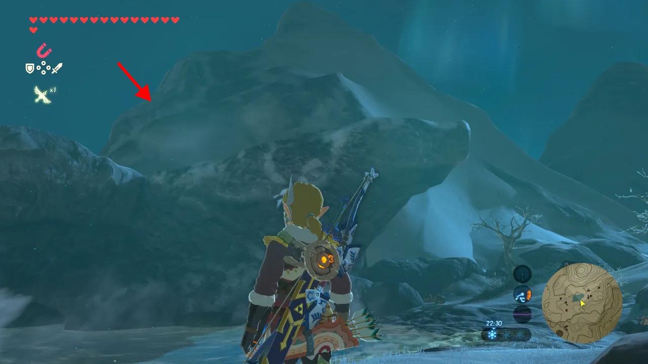位置在海布拉山脉左侧的乌克池塘旁边的山崖上。从飞行训练场往箭头方向飞过去。