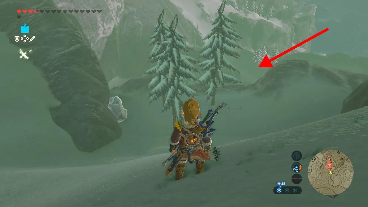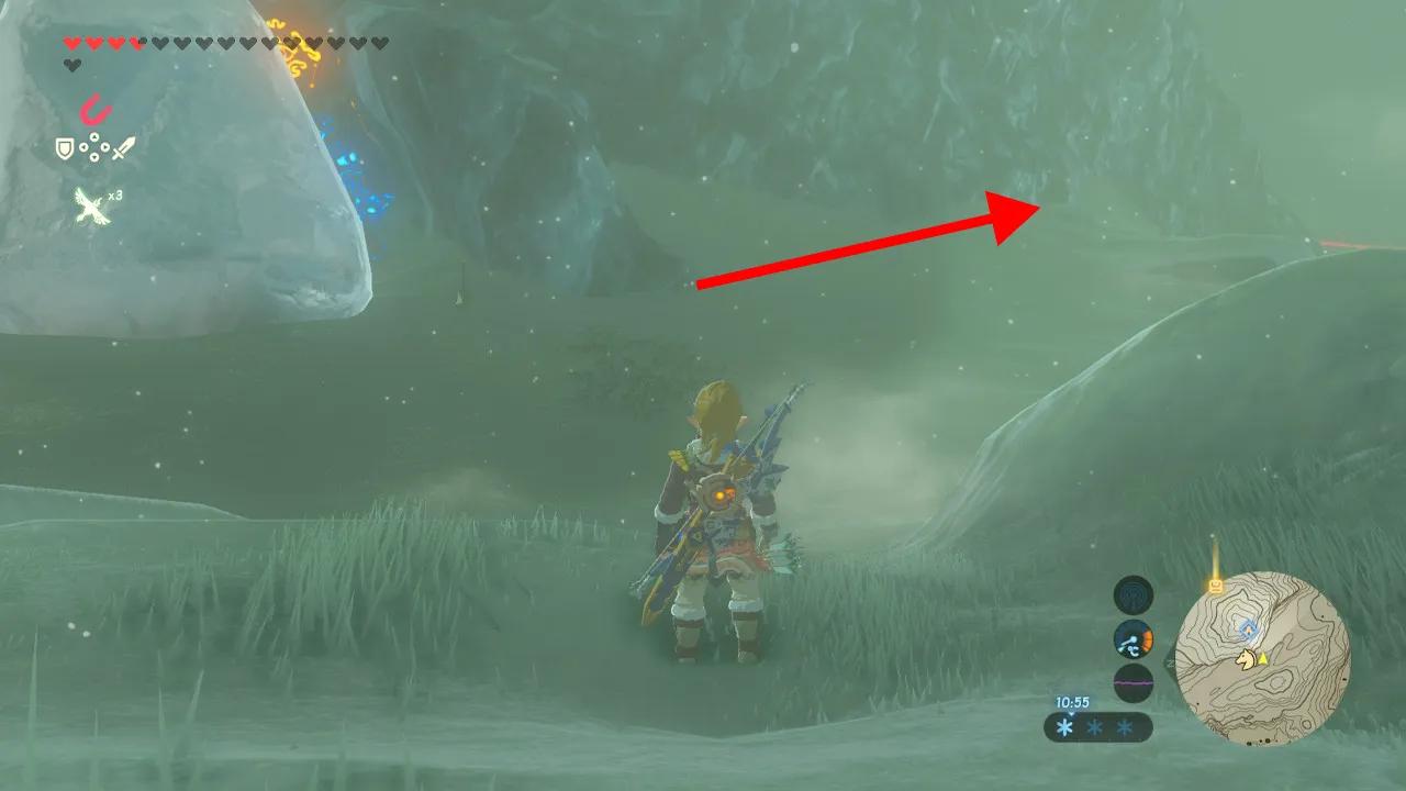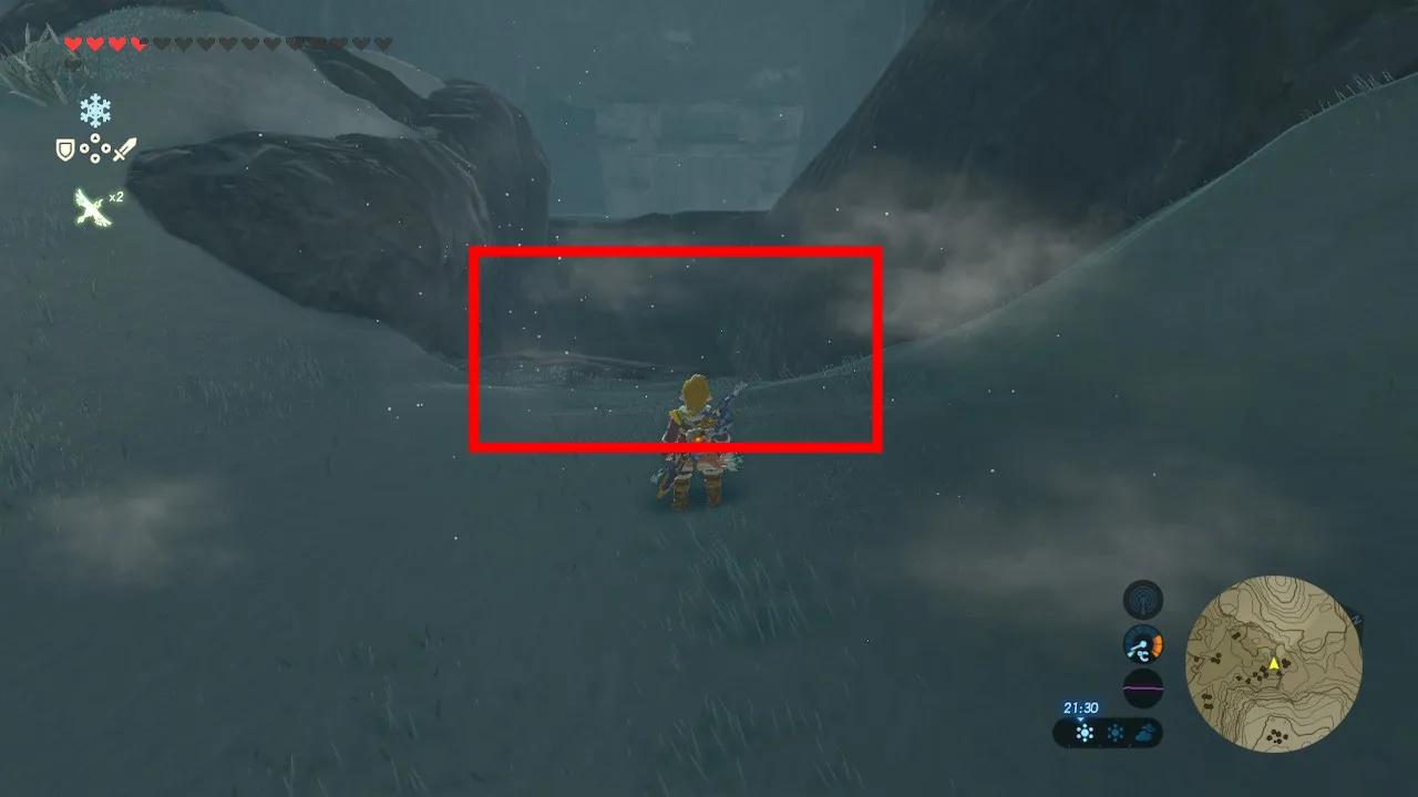 位于地图的左上角冰冻山麓。从泽卡瓦米的秘泉(在?地图?上?显示?为?绿色?的水池?)往箭头方向走。