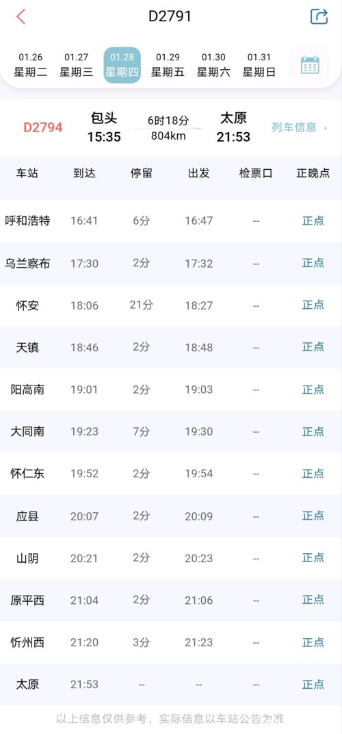 当然,这个时间是相对准确的,但仍可能会因为天气、列车检修等原因而有所变动。所以,如果你计划乘坐高铁从上海到太原,最好提前查询相关信息,以便做出合理的行程安排。