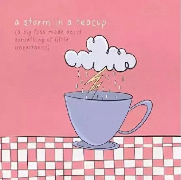 顾名思义,“茶杯里的风暴”自然算不得什么大事,所以就被用来表示“小题大做,大惊小怪”的意思。