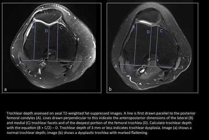 a图是正常的滑车深度,b图是滑车发育不良,呈扁平状。