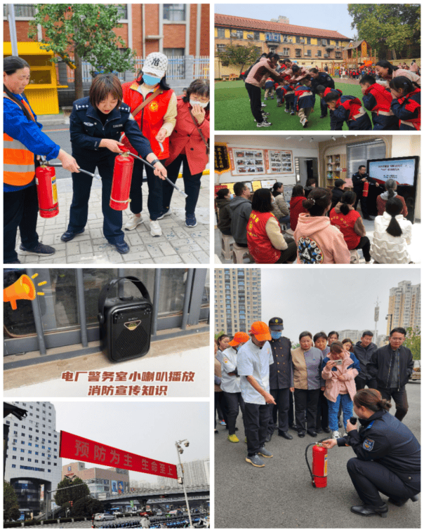 为将消防安全常识送到群众身边,真正打通消防宣传“最后一公里”,11月9日,消防办走进一拖十号幼儿园和大学科技园,针对场所特点,有针对性地开展消防应急疏散演练和消防基础知识培训:天津路派出所小喇叭在小区内循环播放消防宣传知识,电厂新村警务室走进社区,对辖区老年人、商户代表和居民代表,开展消防知识培训;珠江路派出所在辖区主干道悬挂“预防为主,生命至上”消防宣传横幅;重庆路派出所重二社区民警联合社区对辖区商铺开展消防演练。
