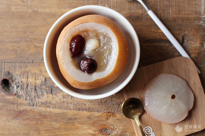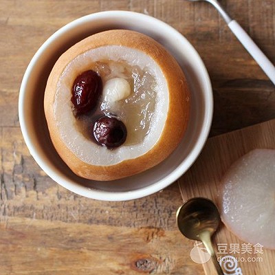 5、最后把梨盒隔水小火炖或者是放到锅里蒸都是可以的但是中途也要转小火,大火的话梨盒就塌了,而且燕窝这种东西不能温度太高的。1小时后左右就能拿出来吃了。