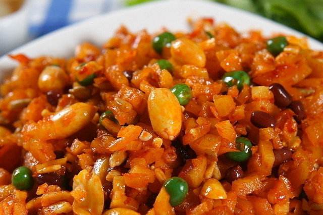 调制是制作西瓜酱豆的重要步骤,在调制的时候要按一斤黄豆配三四两盐和五斤西瓜瓤的比例去调,调好以后还要加入适量的花椒大料以及食用盐,调匀以后要再将豆盆的口上蒙一层棉纱布,然后放在阳光下暴晒,每天早晨要搅拌一次,晚上翻回屋内,晾晒,半个月以后就能闻到酱豆的香味儿。
