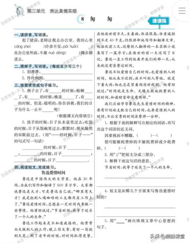 匆匆课文原文(《匆匆》课文笔记和知识点,预习和复习专用))
