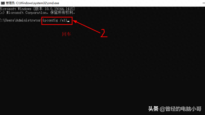 方法三:通过电脑命令 ipconfig