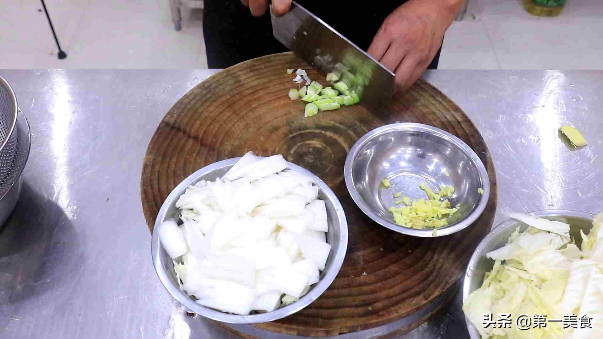 1.白菜帮斜刀切成片,更容易入味,卖相也更好;