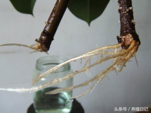 一般一个月左右开始陆续出根,当生出2—3条2厘米长的根时,小心将枝条从瓶中取出。栽入直径13厘米的小盆中,用木棍绑住以免晃动伤根。放在荫蔽处一周左右,再逐步移入阳光下。当苗第一片新叶发出,盆内新根已长满可换大一些的盆养护。