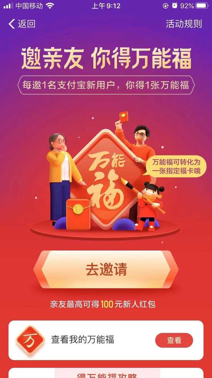支付宝集五福是近几年临近过年的时候几乎每个人都会做的,主打情怀了也是今年与之前不一样,增加了花花卡扫到花花卡的幸运儿可以有机会抽取全年帮助还花呗不过只有2019个名额,不过也是有限额的,最大如下 扫到花花。
