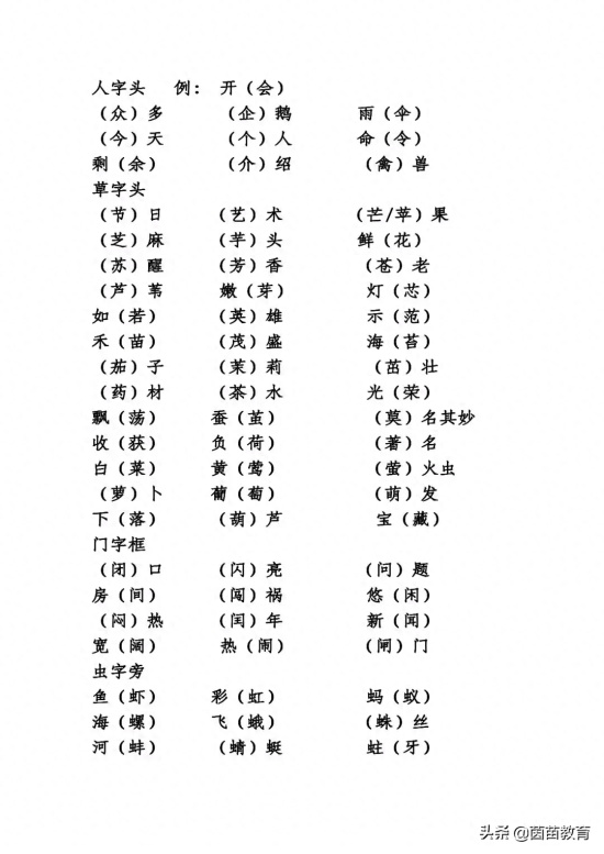 草字头(人字头、草字头、门字框、虫字旁的字,你认识多少?)