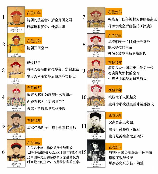 清朝十二位皇帝列表(清朝皇帝顺序表图,让我们一起了解清朝12帝的顺序)