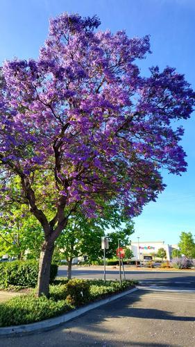 花蓝花楹的花朵大而美丽,通常呈现蓝色(当然也有紫色、白色和粉色等变种)。花期一般在每年的3月至4月。开花期间,花蓝花楹落英缤纷,如同盛开的烟火,美丽动人。