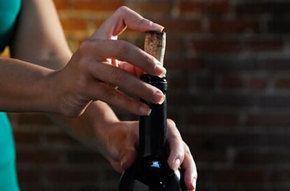 3、 上下活动将空气注入瓶内,直到软木塞从瓶口滑出(通常每瓶酒4-7次即可打开);