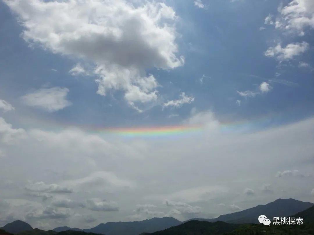 月牙彩虹,这种彩虹形成的原因是光线在通过水滴折射时,水滴发生了分裂,所以导致了彩虹的角度和长度都发生了巨大的改变。