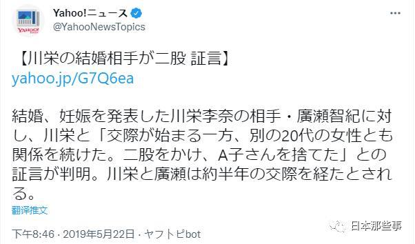 当时《文春》发文爆料,川荣李奈的丈夫在跟她认识以前有过一个女友,他和女友已经发展到了同居阶段,一度准备结婚。但是后来他遇到了川荣李奈,隐瞒自己有女友并开始接近她,同时跟两个人交往,最后男方跟前女友分手,跟川荣交往半年后结婚。