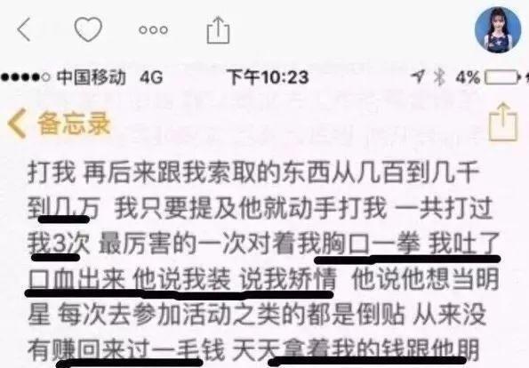 韩安冉控诉小猪先生只花自己的钱,还打过自己二十多个耳光。