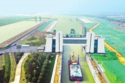 2022年12月30日,“世纪工程”——引江济淮工程一期试通水通航,河南段全线试通水,豫东地区870万群众从此喝上了长江水。“对周口而言,同样重要的是江淮运河通航指日可待。不久的将来,周口的船舶从淮河进入长江主航道,可取道安徽寿县,经东淝河船闸、蜀山枢纽、派河口枢纽和裕溪船闸,由芜湖直接入长江,缩短航程近400公里,大大提高航运效率。”周口市港航管理局副局长于海涛说。