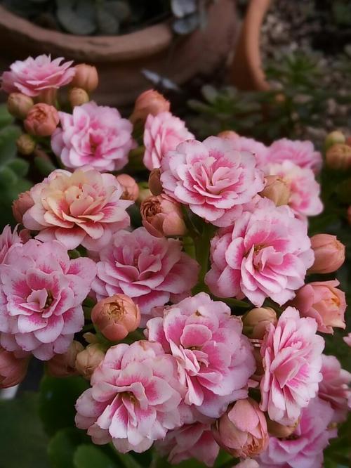 这是长寿花中的一种网红品种,颜色不是浓艳的,但是看上去却又一种奶油一样温柔的感觉,让人感觉很温暖、高级,株型强壮,也是很容易爆盆的。