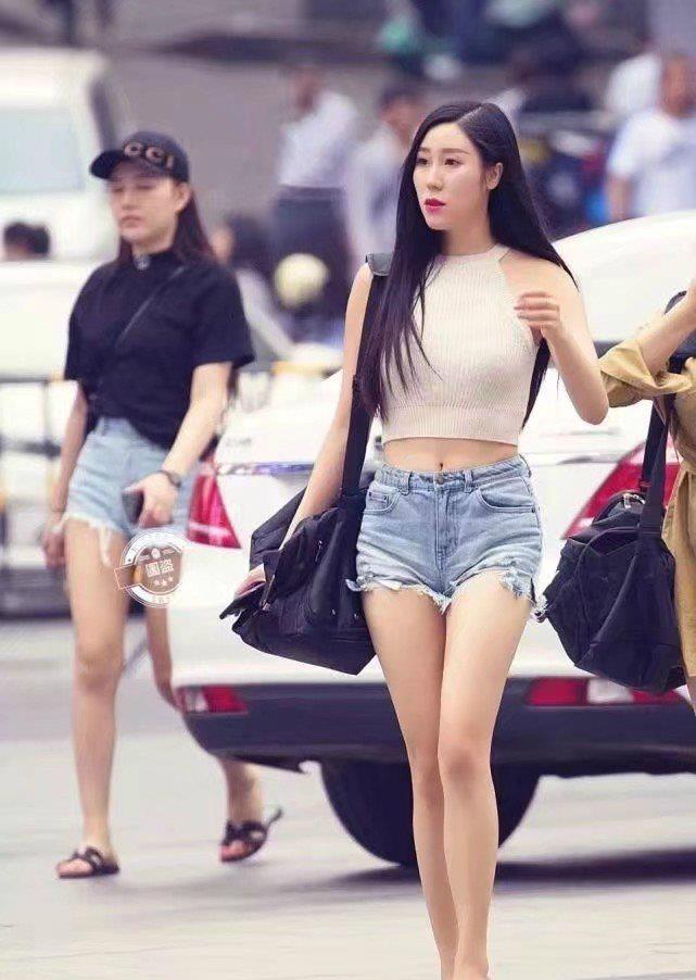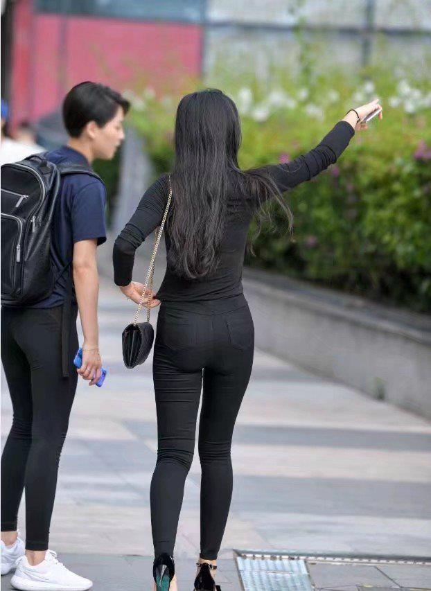 街拍,穿着紧身牛仔裤的翘臀长腿美女,性感又清新