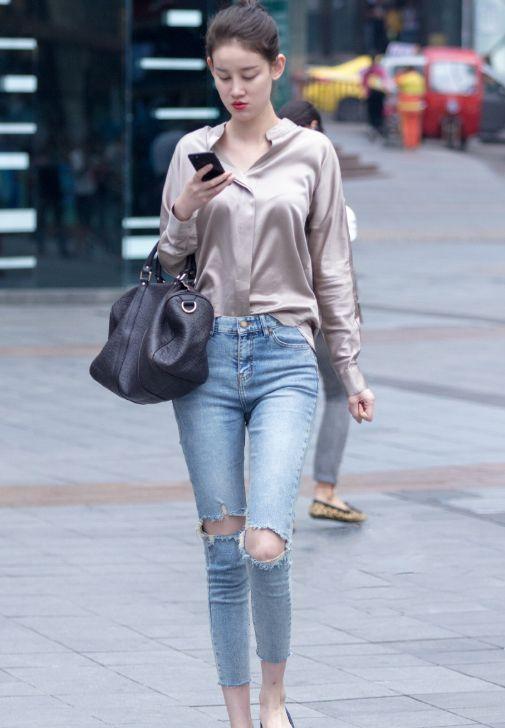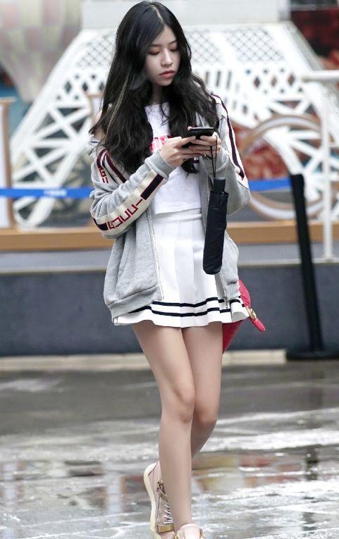 街拍:身穿淡粉色的公主裙,好像披了一件婚纱,好看极了