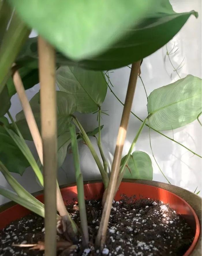 在众多观赏竹芋里,豹纹竹芋对水分的容忍度是比较好的,偶尔忘记浇水也没太大问题。如果长期忘记浇水,植入底部的叶子会逐渐干枯,再不给它浇水,就会导致整个植株枯萎。养护这种植物要保证盆土干透浇透,若是是养在阳光不多的地方,要避免土壤经常潮湿。