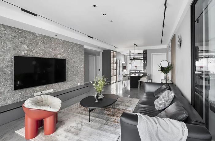 120平米三室两厅两卫嵌入式电视墙装修实景图