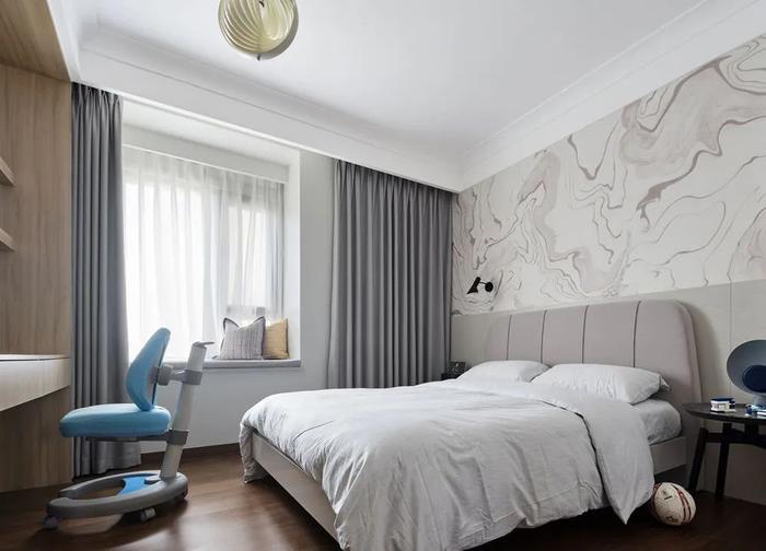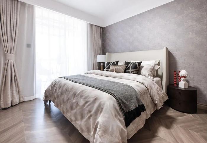 120平米三室两厅两卫卧室窗帘装修图片