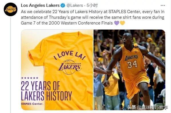 “今天是2021年12月23日,湖人加入斯台普斯中心的第22周年。”