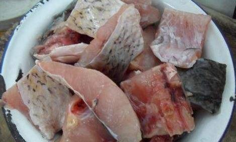 再将草鱼剁成小块,放在清水中,泡上十分钟,再下手清洗,清洗干净后,捞出控水,放在盆中。
