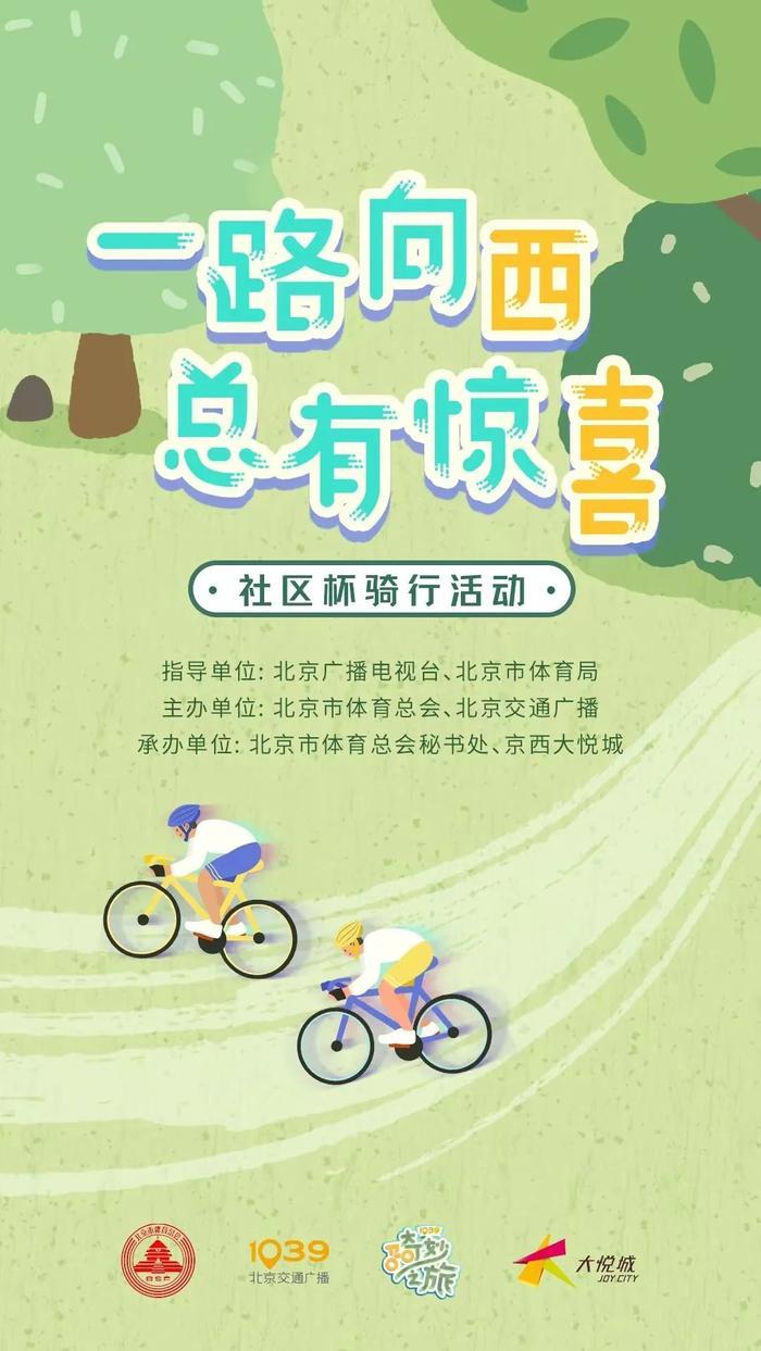 1039骑妙之旅每周约骑,本周日6月18号,将联合北京市体育总会,和骑友们一路向西骑行,追着西坠的落日,拍照打卡北京城市经典地标,电视塔、摩天轮等,完成一场荧光骑行的社区杯骑行活动。