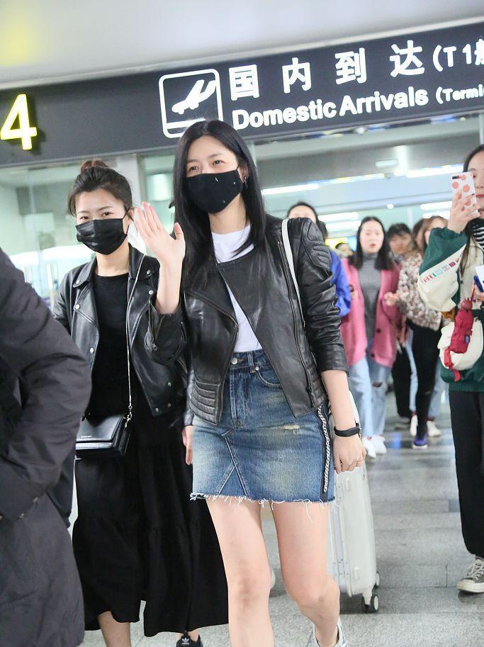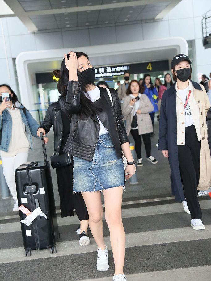 近日,辣妈陈妍希身穿超短牛仔裙搭配皮夹克现身机场,大秀长腿。现场,陈妍希虽然口罩掩面,但心情不错,眼睛时不时笑成一条线,向粉丝亲切挥手打招呼。