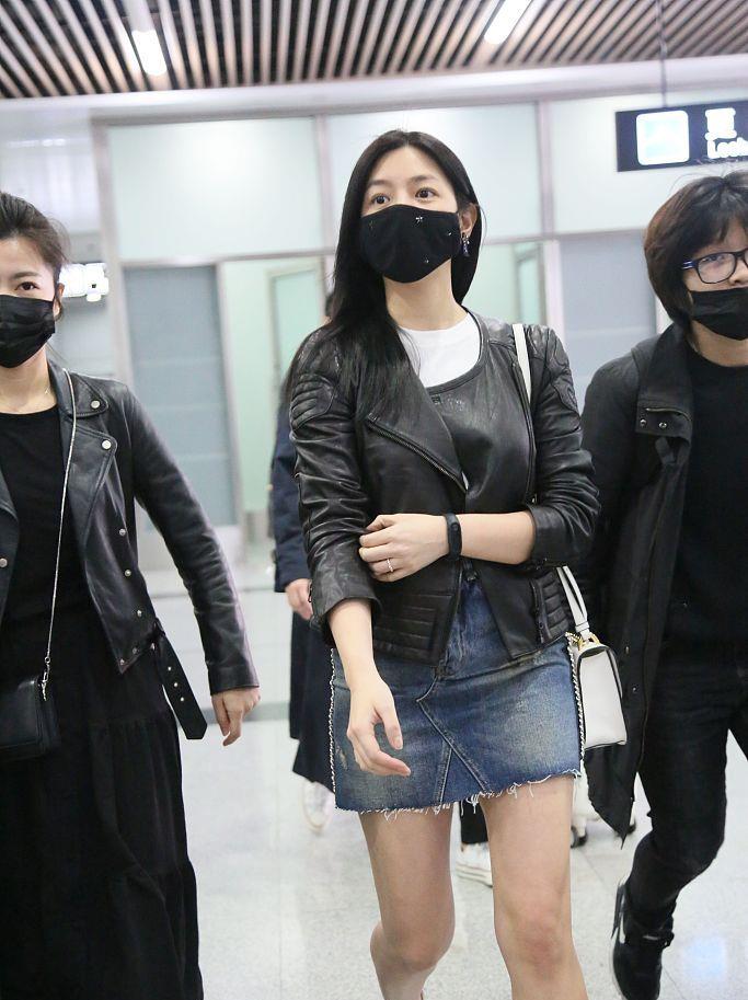 辣妈陈妍希现身机场 穿牛仔裙秀美腿亲切向粉丝打招呼