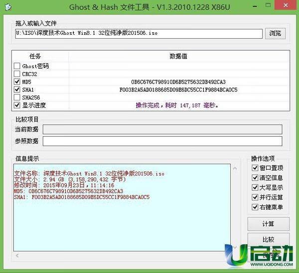 然后将MD5校验工具会自动帮你开始做计算,时间长短是以你文件的大小及包含内