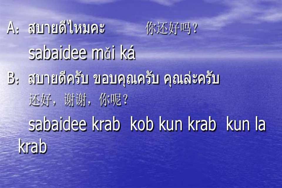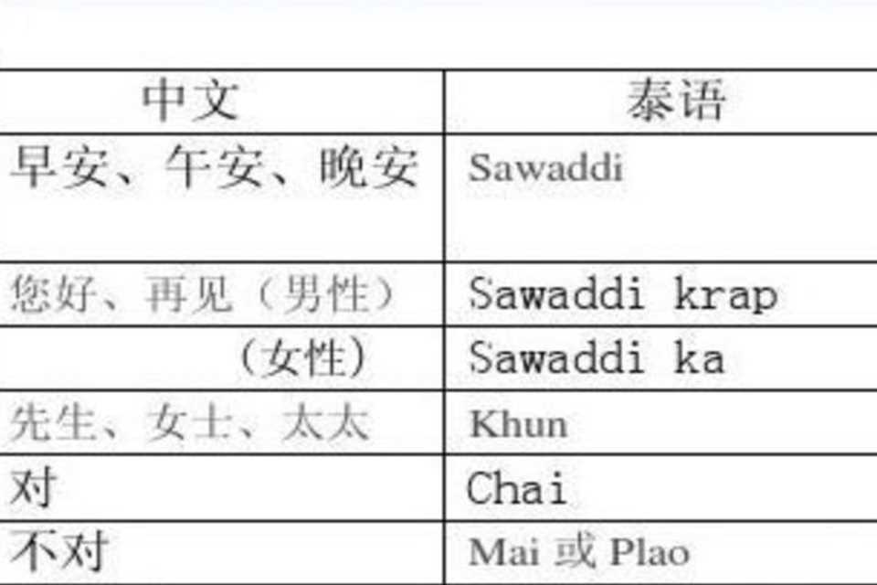 2.泰语除了用萨瓦迪卡打招呼外,还可以用萨拜迪麦、坤赐阿莱、坤拜奈、坤水晶等打招呼。
