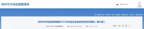 中国质量新闻网讯 2021年4月15日,深圳市市场监督管理局网站发布了2021年食品安全抽样检验情况通报(第九期)。据通报,本次抽检食品共1111批次,涉及经营主体352家,共检测食品指标4964项次。其中抽检酒类69批次,合格样品68批次。