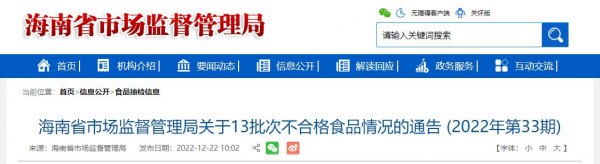 中国质量新闻网讯 12月22日,海南省市场监督管理局网站发布2022年第33期食品抽检通告。本期抽检92批次酒类产品,合格92批次。