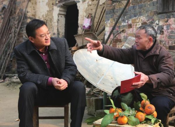 周志专(左)走访慰问村里群众