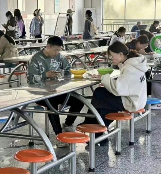 随后,同“黑马情侣”一个学校的学生,拍下了两人在学校食堂吃饭的照片并发到了网上。虽说偷拍别人不大合适,但这张照片却让大伙初次察觉“黑马”露出的马脚。