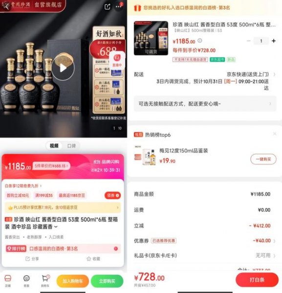 酒周志比了价格,也确实没有满减等活动,加上老李的信用背书,觉得十分值,当即剁手买了两瓶。