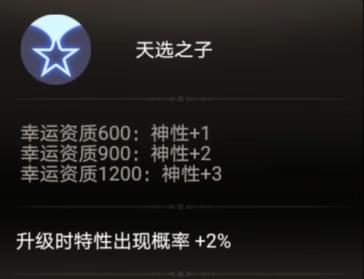 到底该怎么养成呢,上面我们说了,作为主火,我们要尽可能多的获取正收益的特性,特性一共是6个格子,天生自带0-3个,每次升级有小概率领悟,其中有一个特性天选之子,可以额外提升领悟概率