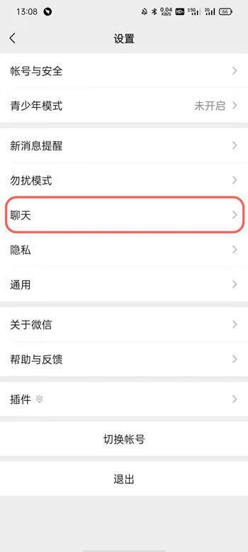 2、在微信设置中,点击【聊天】,进入执行聊天相关的设置;