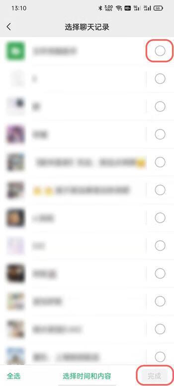 6、勾选需要转移聊天记录的联系人、群聊等,点击右下角的【完成】确定转移;