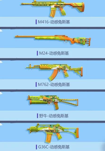 m416-动感免斯基、m24-动感免斯基、m762-动感免斯基、野牛-动感免斯基、G36C-动感免斯基。